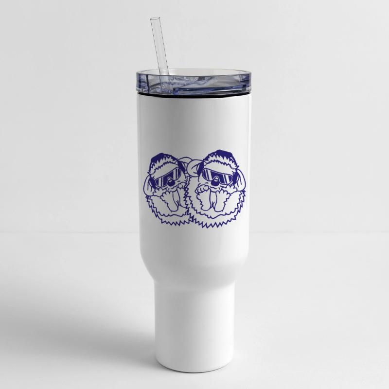 - Travel tumbler with lid and handle